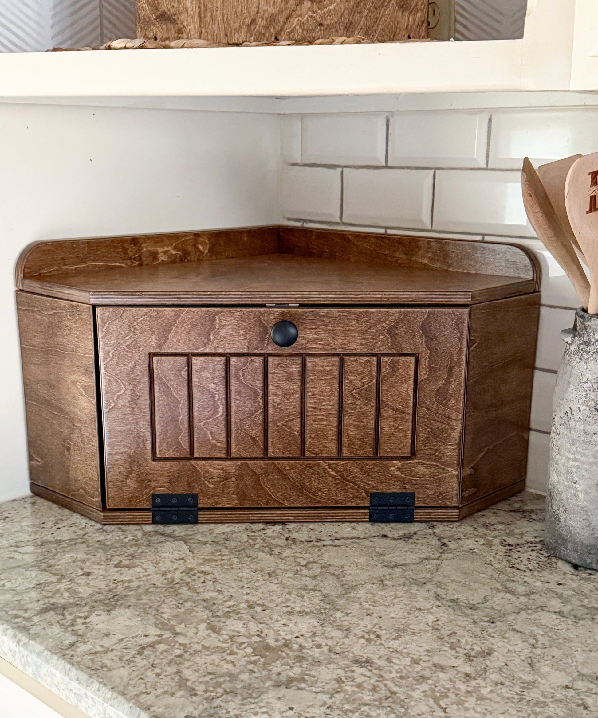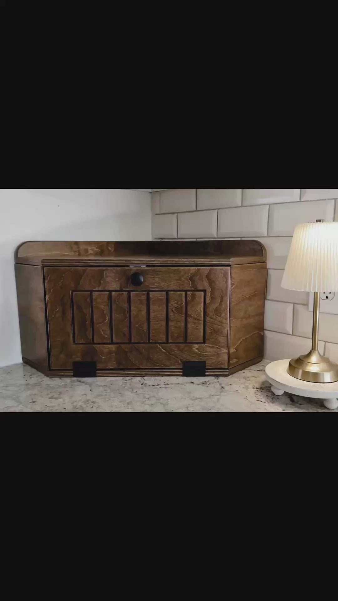 - Stained Breadboxes are stained inside and outside.