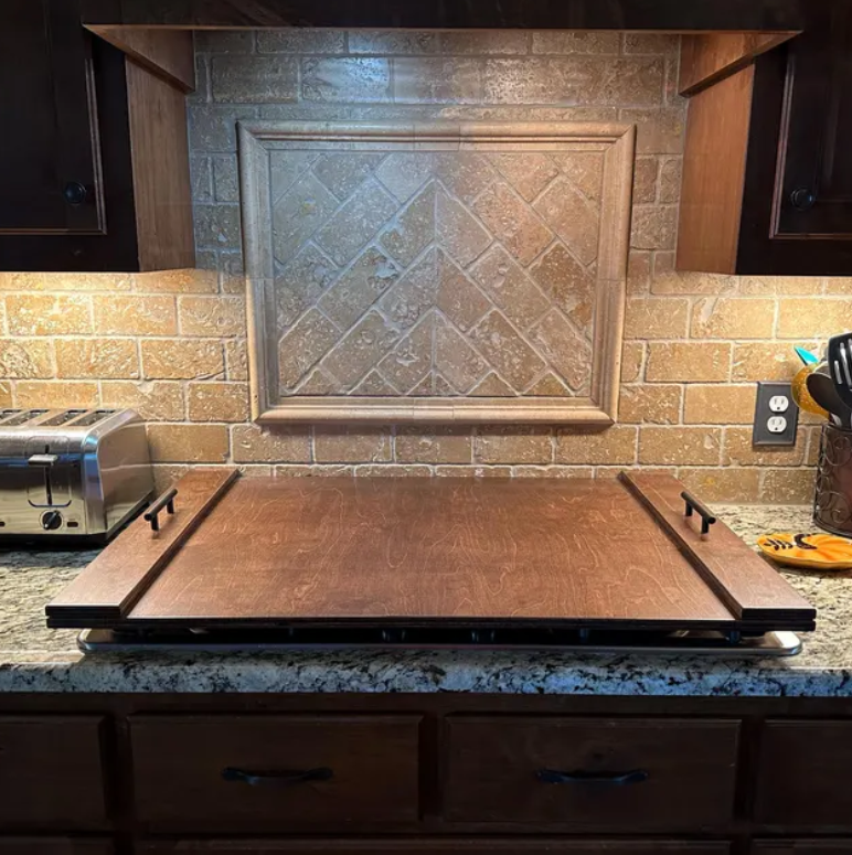 This minimalist design will keep your kitchen looking tidy and fresh all while adding 30 inches of extra counter space! Our handmade noodle boards are the perfect way to make better use of your stovetop. Although not food grade, these are definitely decor-grade :-) Use them to clean up the look of your stovetop or hold often-used spices or decor.