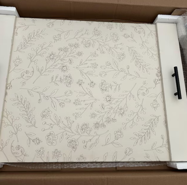 This stove cover is reminiscent of a delightful cottage. Painted with a soft ivory, engulfed in flowers and lightly distressed, it is the perfect addition to your kitchen.