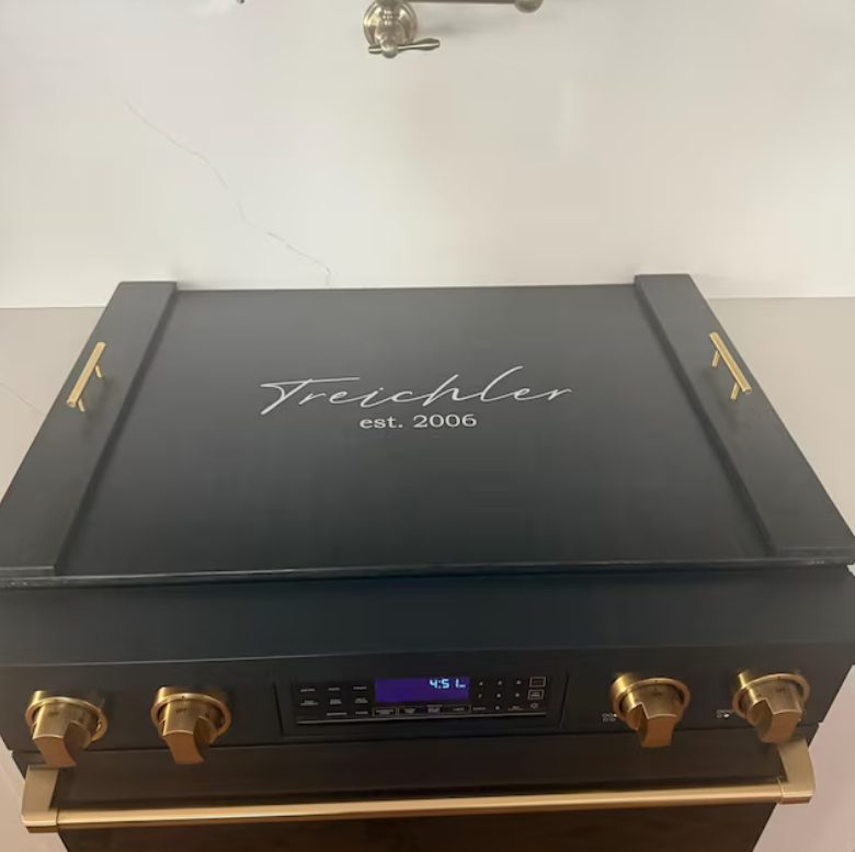 Custom orders are not refundable. This includes size and lettering. Measure your stove and check your spelling. Boards over 40 inches are NOT returnable and are final sale.