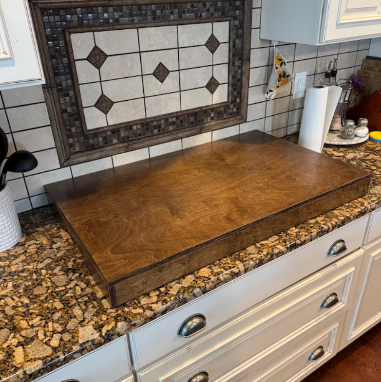 This board is perfect for anyone who thrives in a clean, minimalist space! The beautiful warm brown stain is all you will see when this board covers your stovetop. Our handmade noodle boards are the perfect way to make better use of your stovetop. Although not food grade, these are definitely decor grade :-) Use them to clean up the look of your stovetop or hold often-used spices or decor.
