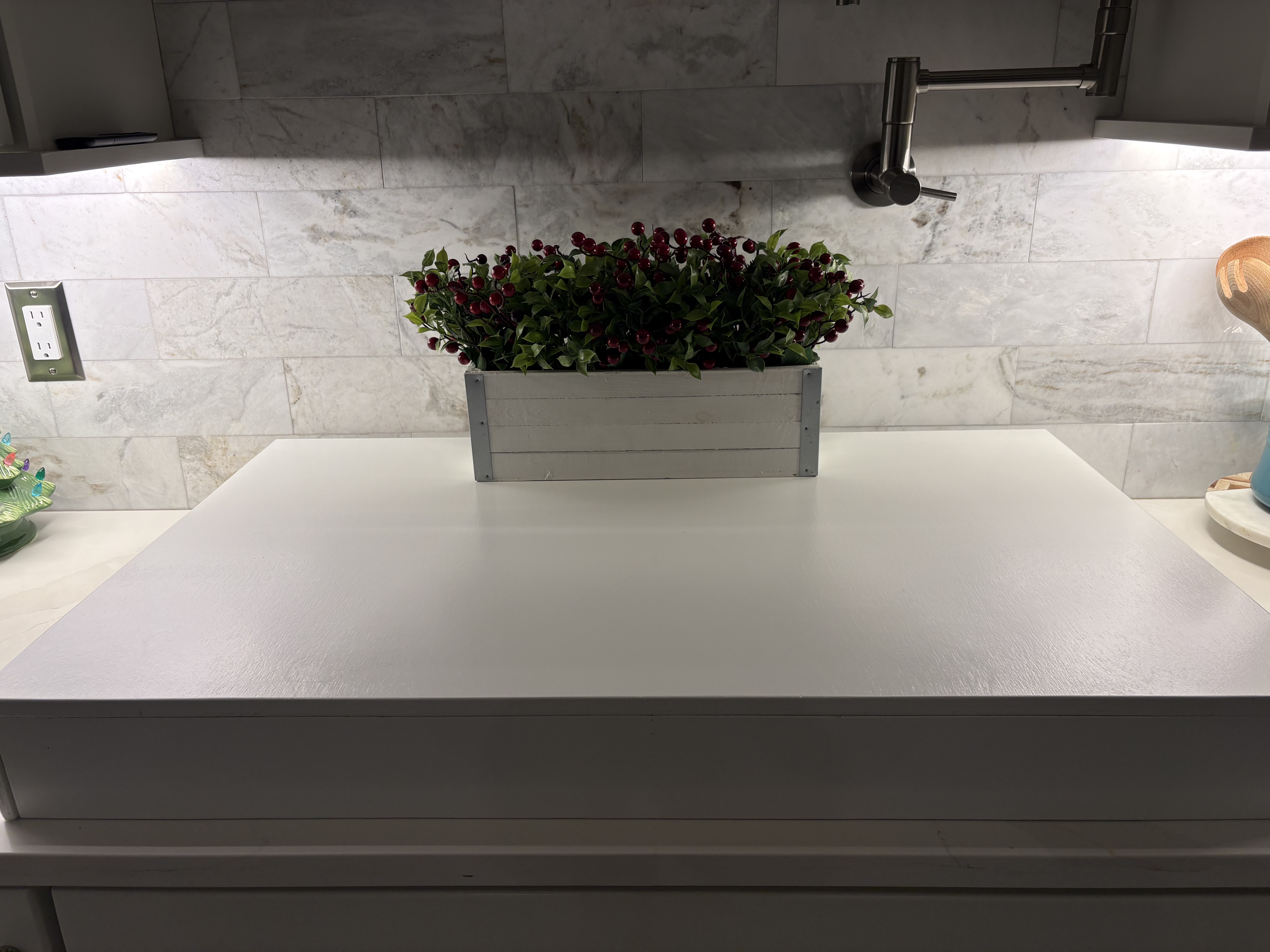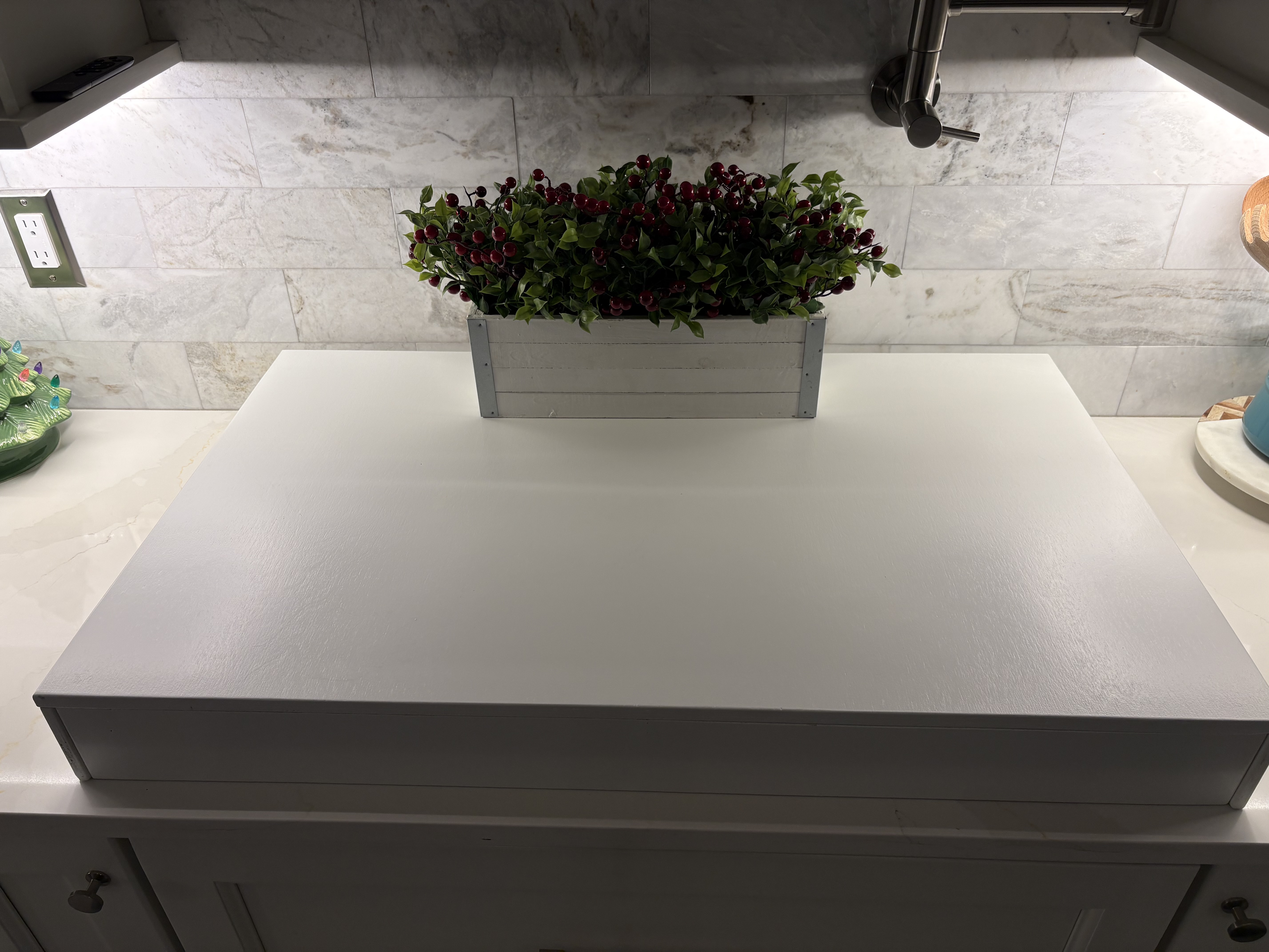 This soft white stove cover board is the perfect way to brighten up any kitchen.